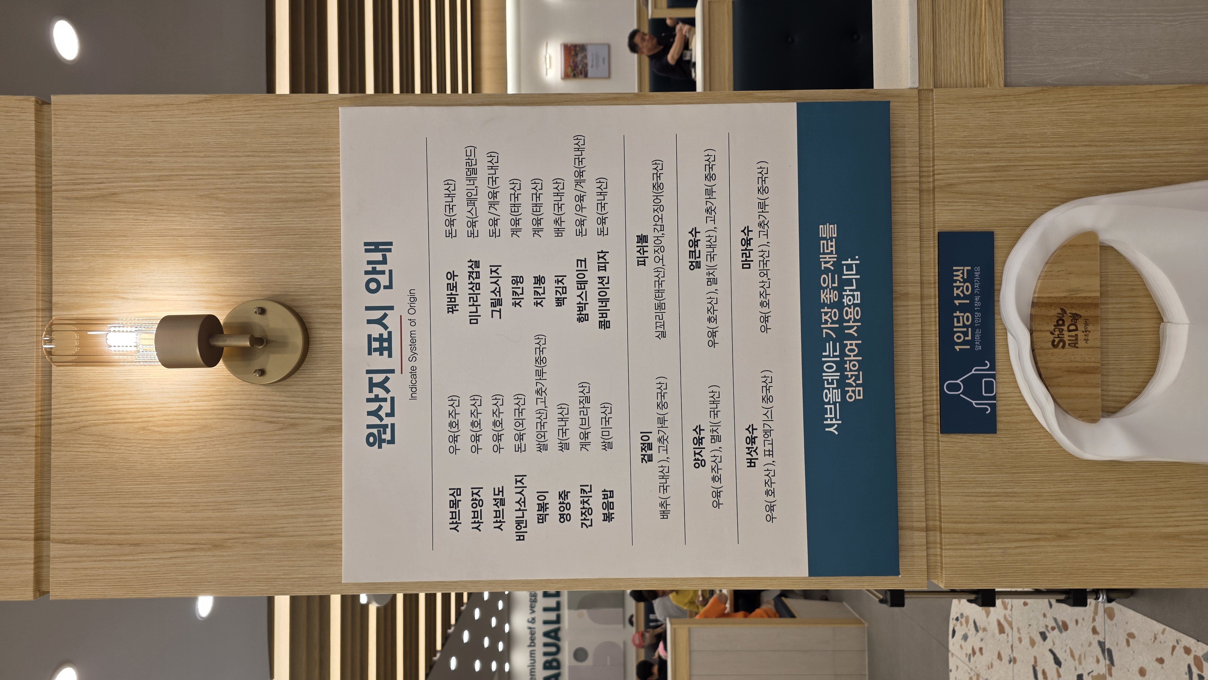 원산지 표시 안내 — 주재료 원산지를 한 장에 투명하게 공지. 안심하고 먹기 좋았어요.