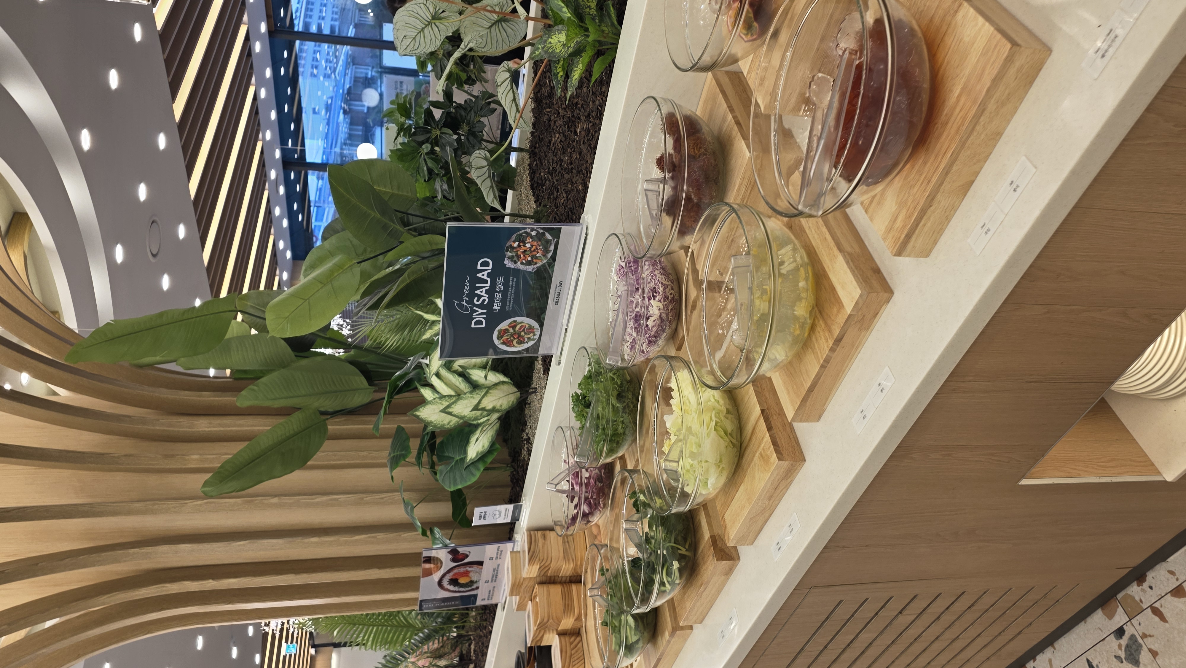 DIY 샐러드바 — 신선 채소 가득. 메인 전 샐러드로 스타트 추천.