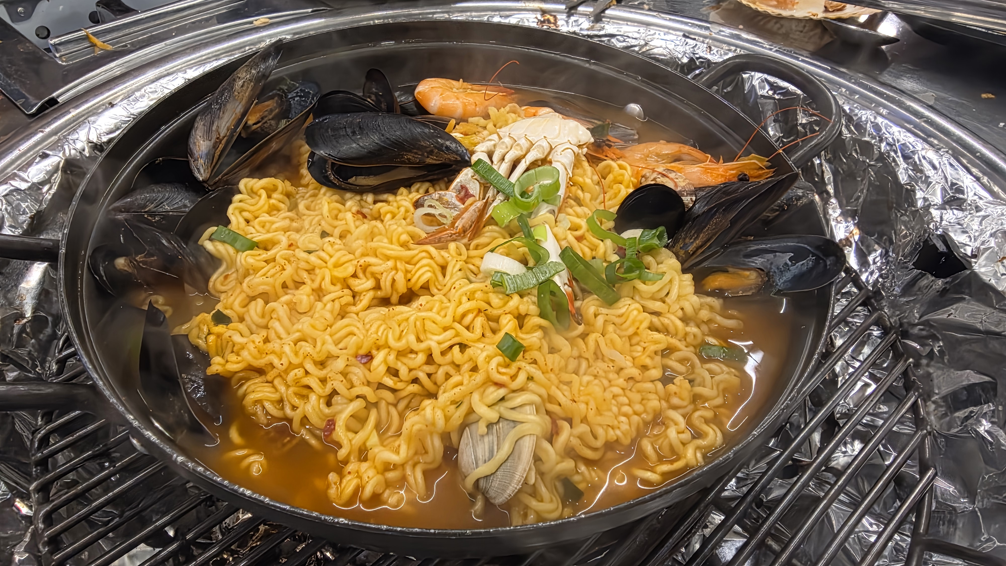 조개랑 꽃게, 새우가 푸짐하게 들어간 해물라면은 국물이 얼큰하고 시원했습니다.