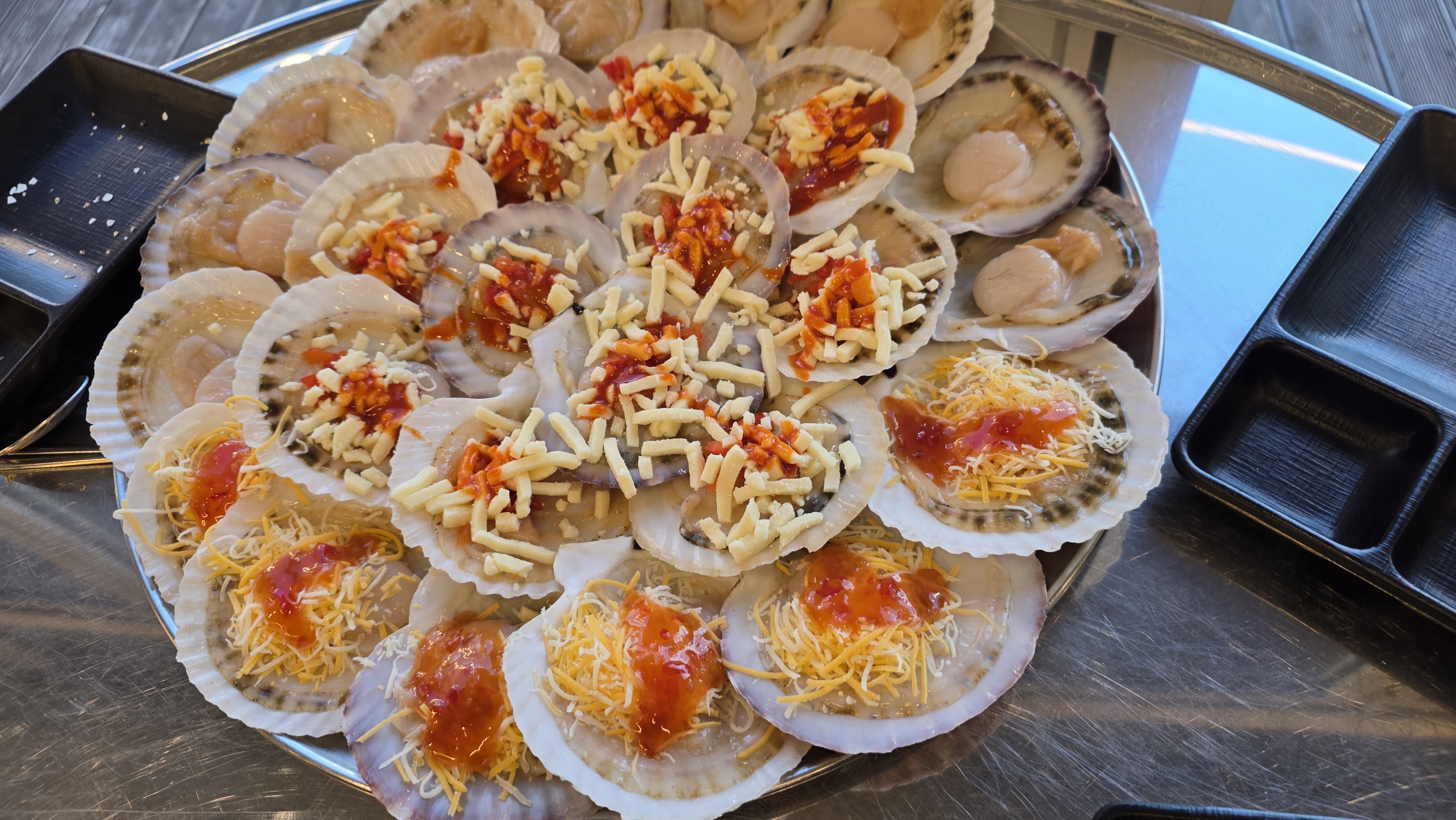치즈랑 소스 올려 구운 조개는 탱글탱글 씹는 맛이 좋고, 고소함까지 더해져서 별미였어요.